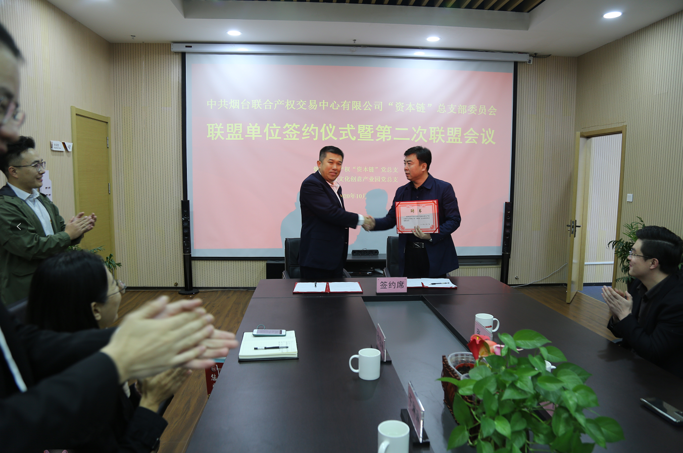 “黨是最好的信仰,建是最大的優(yōu)勢(shì)”,懸掛著的各具特色的黨建標(biāo)語(yǔ),成為了煙臺(tái)1861文化創(chuàng)意產(chǎn)業(yè)園黨建文化的最好詮釋。2020年10月29日,迎著晨曦踏著朝陽(yáng),聯(lián)合產(chǎn)權(quán)“資本鏈黨總支”會(huì)同聯(lián)盟單位煙臺(tái)萊山建行黨總支共同來(lái)到1861產(chǎn)業(yè)園召開(kāi)聯(lián)盟單位簽約儀式暨第二次聯(lián)盟會(huì)議。簽約儀式上,聯(lián)合產(chǎn)權(quán)黨支部書(shū)記初志杰代表“資本鏈黨總支”同1861文化創(chuàng)意產(chǎn)業(yè)園黨總支簽訂聯(lián)盟協(xié)議,并為園區(qū)黨總支書(shū)記張儉凱同志頒發(fā)了兼職委員聘書(shū)。
