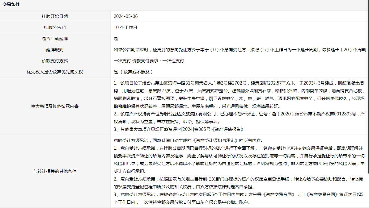轉讓方:煙臺業(yè)達文旅集團有限公司