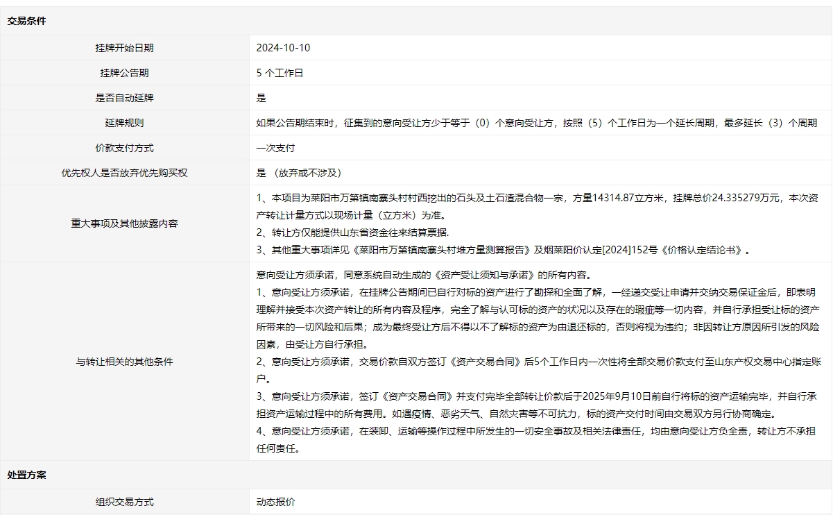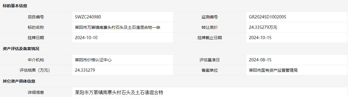 萊陽(yáng)市萬(wàn)第鎮(zhèn)南寨頭村石頭及土石渣混合物一宗