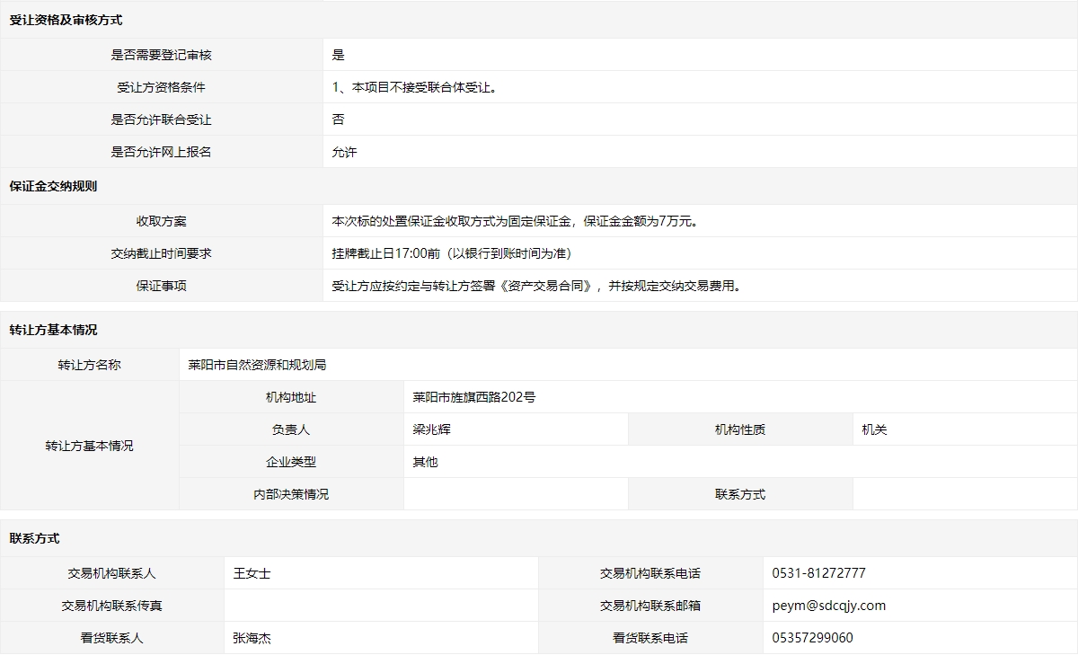 轉(zhuǎn)讓方:萊陽(yáng)市自然資源和規(guī)劃局