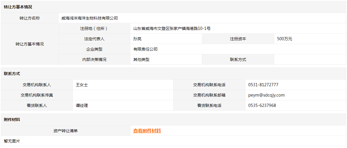轉(zhuǎn)讓方:威海鴻灃海洋生物科技有限公司