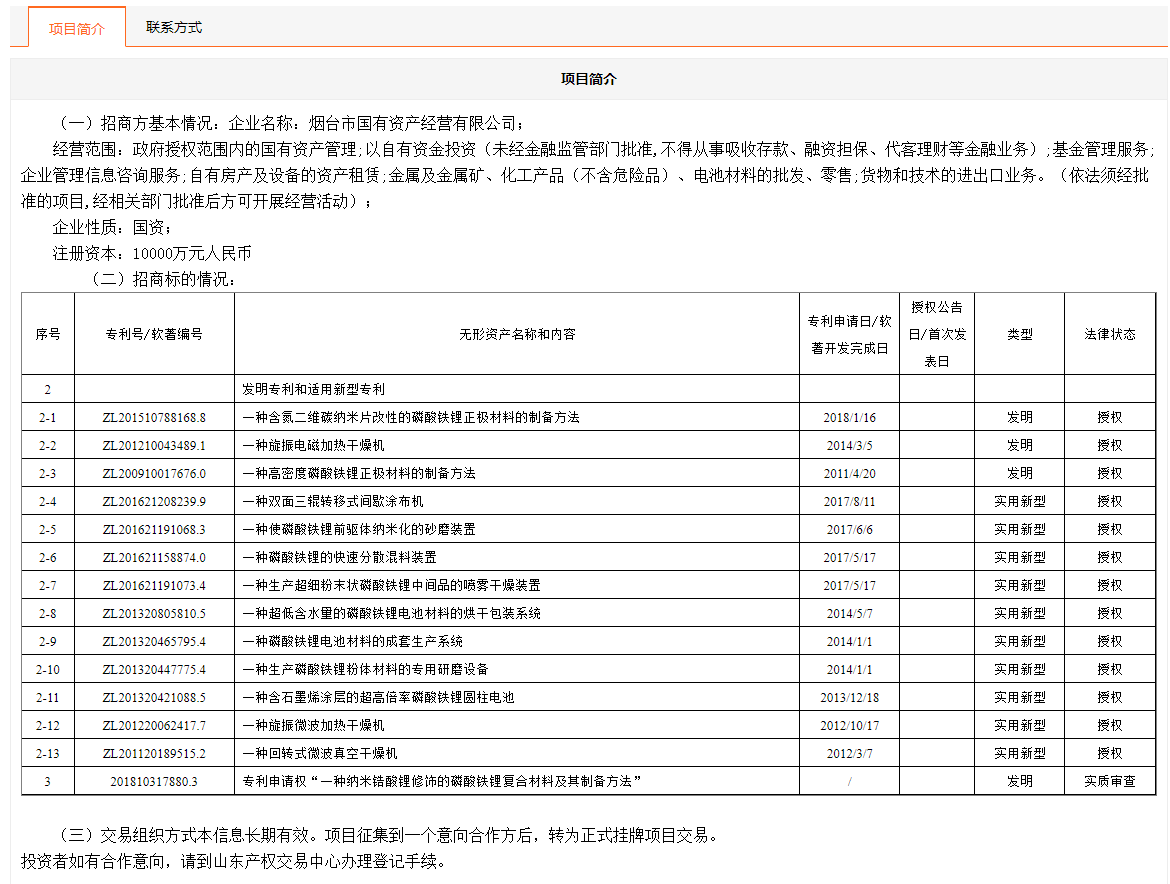 煙臺市國有資產(chǎn)經(jīng)營有限公司所屬15項專利使用許可權(quán)