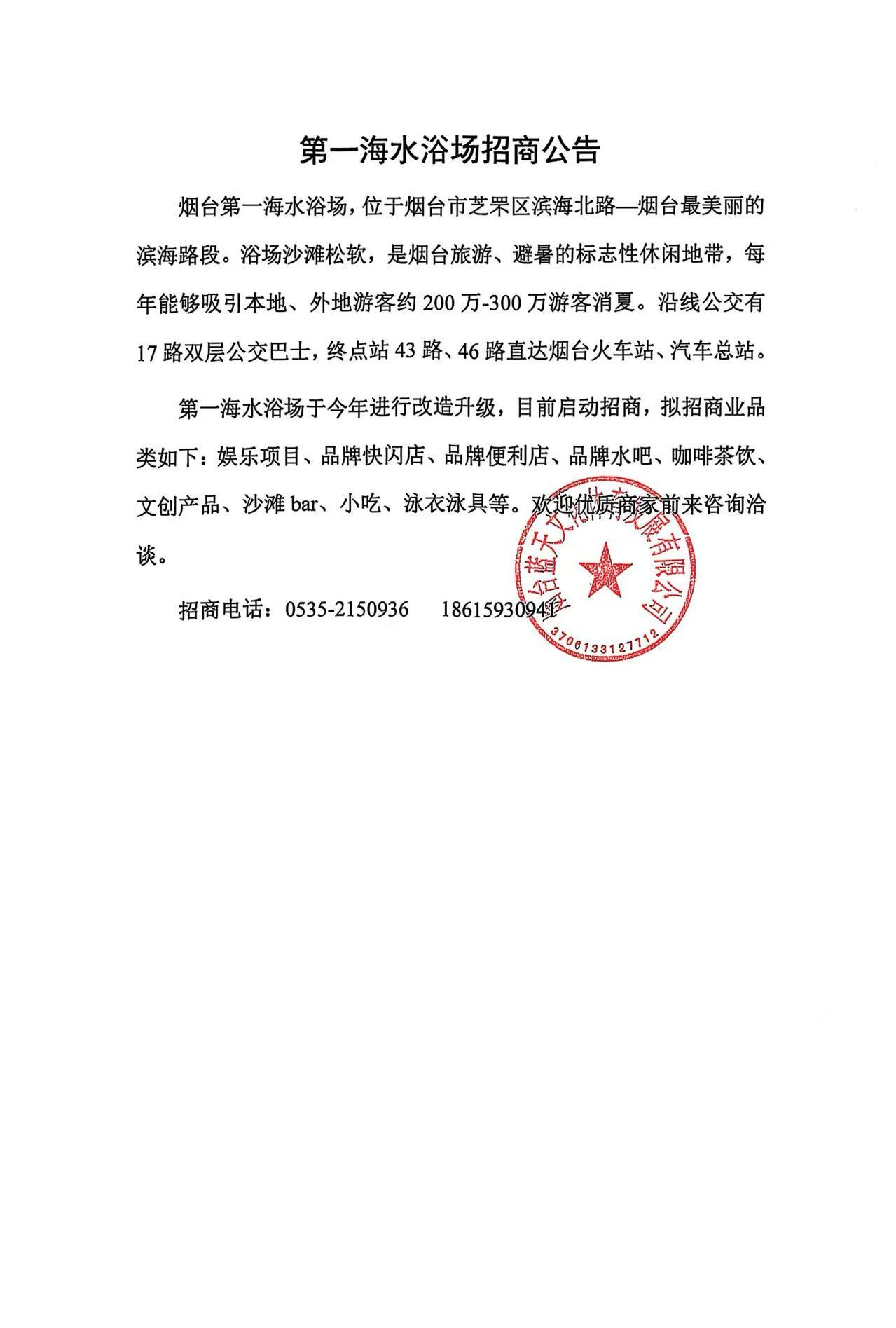 第一海水浴場招商公告