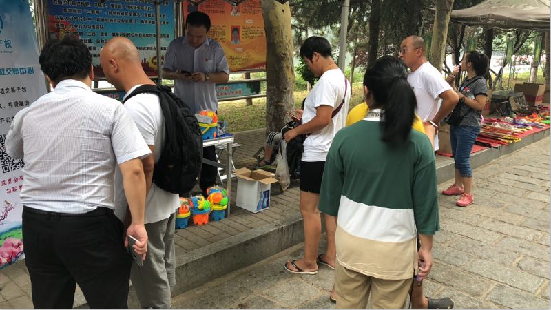 7月28日,聯(lián)合產(chǎn)權(quán)首次線下實(shí)地宣傳推廣活動(dòng)在芝罘區(qū)南山公園展開(kāi),活動(dòng)以孩子為突破口,通過(guò)贈(zèng)送玩具的方式吸引前來(lái)游玩的市民游客。家長(zhǎng)朋友們通過(guò)掃描微信公眾號(hào)二維碼并轉(zhuǎn)發(fā)朋友圈即可為自家寶貝挑選一件心儀的玩具,未帶孩子游玩的游客同樣的方式也可以獲贈(zèng)礦泉水或其他玩具一份。宣傳人員均為一線業(yè)務(wù)人員,用通俗語(yǔ)言向市民朋友系統(tǒng)介紹產(chǎn)權(quán)業(yè)務(wù)和相關(guān)服務(wù)。活動(dòng)從上午8點(diǎn)開(kāi)始到10點(diǎn)半結(jié)束,60件玩具和2箱礦泉水便贈(zèng)送一空,經(jīng)過(guò)溝通了解到參與活動(dòng)的群體主要包括各類企業(yè)職工、個(gè)體經(jīng)營(yíng)者、公務(wù)員等。